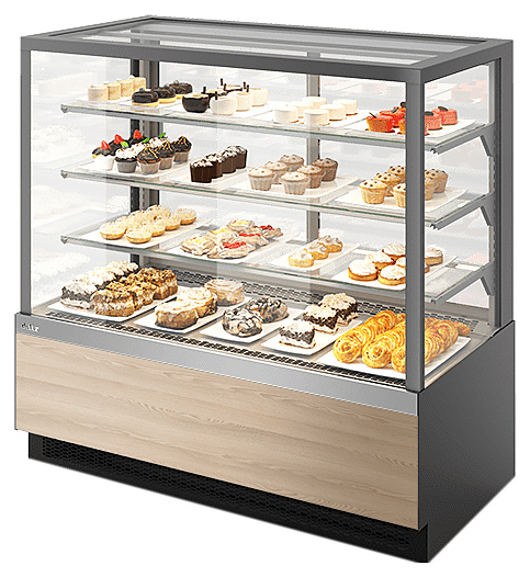 Кондитерская витрина Chilz VETE KUB LUX 90 предназначена для демонстрации, охлаждения и краткосрочного хранения кондитерских изделий, закусок и десертов на предприятиях общественного питания и торговли. Модель оснащена 4 полками. Оборудование работает при температуре окружающей среды 25 °С и влажности 60%.