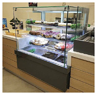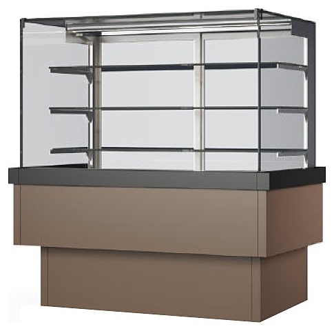 Кондитерская витрина ENTECO MACTER НЕМИГА CUBE ПС PREMIUM 125 ВВ-0,4-2,4-1-5В предназначена для эффектной демонстрации и кратковременного предпродажного хранения десертов, пирожных и других кондитерских изделий на предприятиях общественного питания и торговли. Модель оснащена охлаждаемым запасником для хранения продукции, 3 навесными экспозиционными полками и выдвижным поддоном для тортов. Навесные полки выполнены из стекла, задние двери и боковины со стеклопакетами.