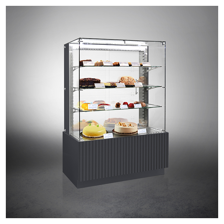 Напольная кондитерская витрина Finist AIR LUX AL-13-7-163 предназначена для кратковременного хранения и предпродажной демонстрации десертов и кондитерских изделий на предприятиях общественного питания и торговли. Модель оснащена раздвижными дверьми-купе, 3 полками и подсветкой. Фасады выполнены из МДФ, полки - из стекла, дно витрины - из зеркальной нержавеющей стали.