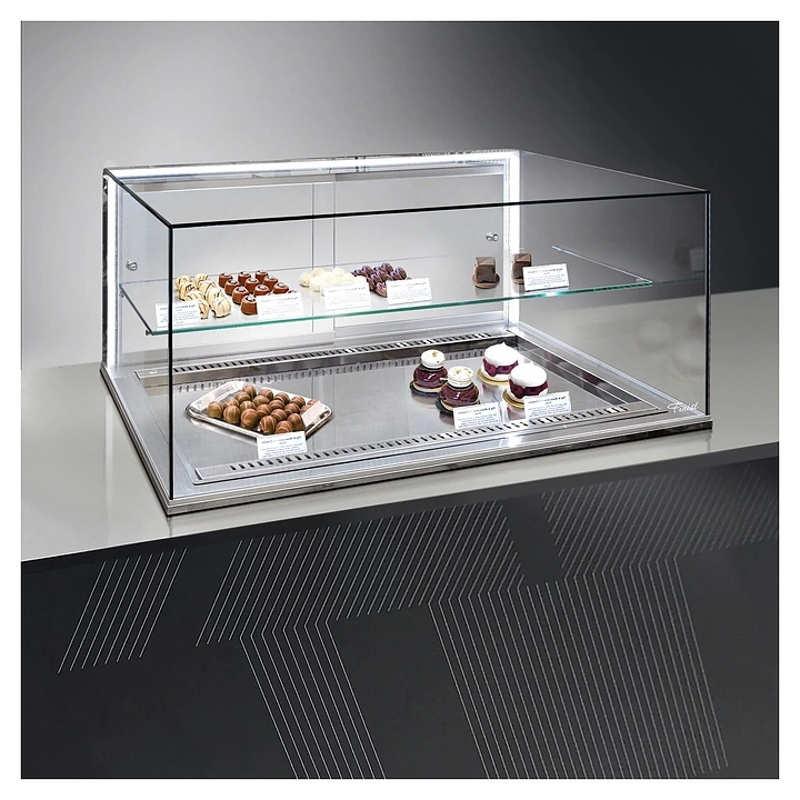 Встраиваемая горизонтальная витрина Finist Glassier G812-12/7/5 предназначена для кратковременного хранения и предпродажной демонстрации десертов, шоколадных изделий, конфет или пралине на предприятиях общественного питания и торговли. Модель оснащена полкой, светодиодной подсветкой и может монтироваться в столешницу из любого материала. Купол витрины имеет большую площадь остекления, что помогает беспрепятственно разглядеть товар со всех сторон. Корпус выполнен из высококачественной нержавеющей стали, купол и полка – из стекла.