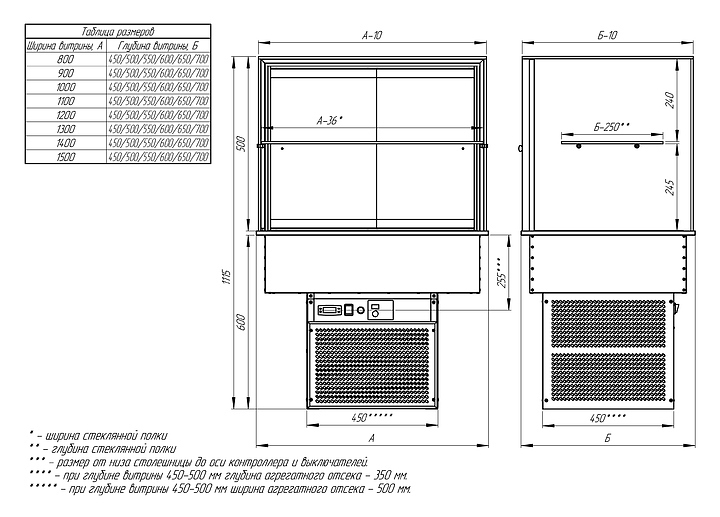 Встраиваемая горизонтальная витрина Finist Glassier G812-9/45/5 предназначена для кратковременного хранения и предпродажной демонстрации десертов, шоколадных изделий, конфет или пралине на предприятиях общественного питания и торговли. Модель оснащена 2 дверьми со стороны продавца, полкой, светодиодной подсветкой и может монтироваться в столешницу из любого материала. Купол витрины имеет большую площадь остекления, что помогает беспрепятственно разглядеть товар со всех сторон. Каркас и столешница выполнены из зеркальной нержавеющей стали, купол - из просветленного стекла, полка - из стекла и агрегатная часть - из крашеной стали.