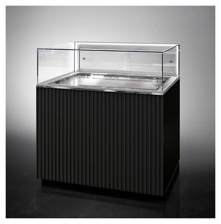 Напольная кондитерская витрина Finist GLASSIER LUX GL812-12/7/5 предназначена для кратковременного хранения и предпродажной демонстрации десертов и кондитерских изделий на предприятиях общественного питания и торговли. Модель оснащена охлаждаемой камерой-накопителем, раздвижными дверьми-купе, полкой и светодиодной подсветкой. Фасады выполнены из МДФ, купол - из просветленного стекла, дно - из нержавеющей стали.
