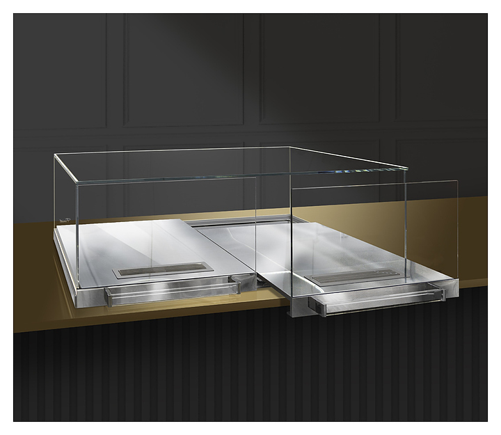 Встраиваемая горизонтальная кондитерская витрина Finist Glassier SLIDE DUO GSD-15/7/3 предназначена для кратковременного хранения, предпродажной демонстрации и эффектной подачи кондитерских изделий на предприятиях общественного питания и торговли. Технология Drop-In гарантирует монтаж в столешницу из любого материала. Двойной выдвижной поддон позволяет с лёгкостью доставать выбранные блюда без риска повреждения стоящих по соседству десертов. Корпус выполнен из высококачественной нержавеющей стали.