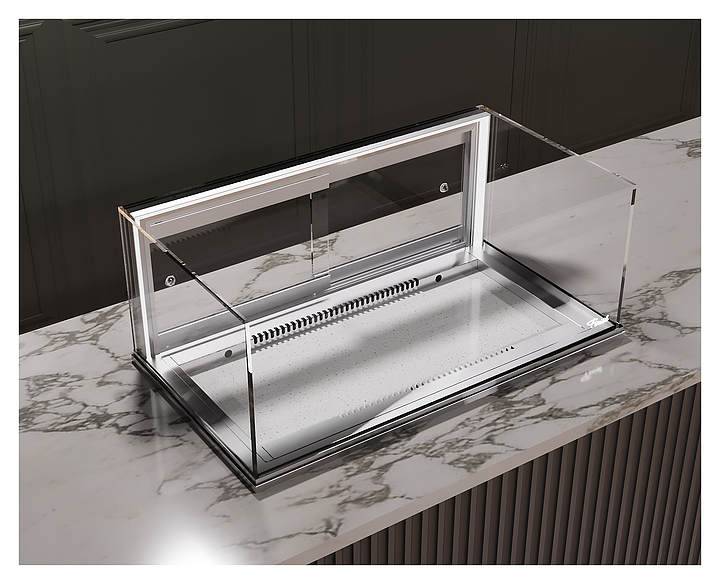 Встраиваемая кондитерская витрина Finist Glassier58 Stone Gst-12/55/3 предназначена для кратковременного хранения и предпродажной демонстрации десертов и кондитерских изделий на предприятиях общественного питания и торговли. Модель может монтироваться в столешницу из любого материала, что позволяет легко интегрировать в интерьер. Витрина оснащена светодиодной подсветкой и дверцей-купе. Каркас выполнен из зеркальной нержавеющей стали, купол - из стекла, зона выкладки - из искусственного камня, который отличается прочностью, долговечностью, гигиеничностью, легко очищается и не впитывает запахи.