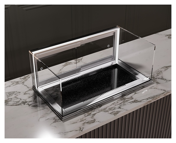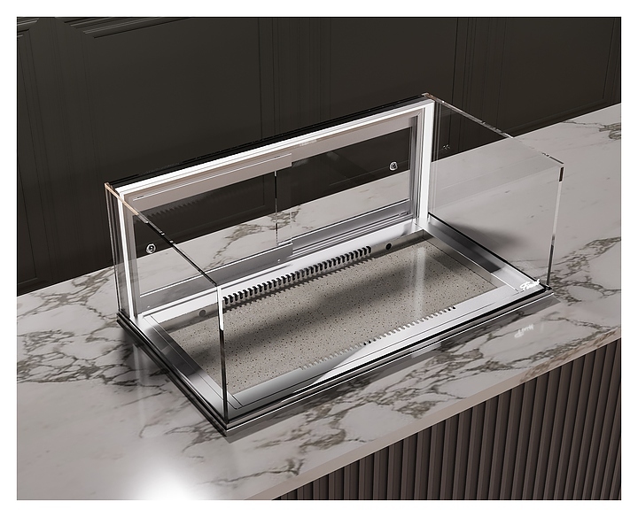 Встраиваемая кондитерская витрина Finist Glassier58 Stone Gst-12/7/3 предназначена для кратковременного хранения и предпродажной демонстрации десертов и кондитерских изделий на предприятиях общественного питания и торговли. Модель может монтироваться в столешницу из любого материала, что позволяет легко интегрировать в интерьер. Витрина оснащена светодиодной подсветкой и дверцей-купе. Каркас выполнен из зеркальной нержавеющей стали, купол - из стекла, зона выкладки - из искусственного камня, который отличается прочностью, долговечностью, гигиеничностью, легко очищается и не впитывает запахи.