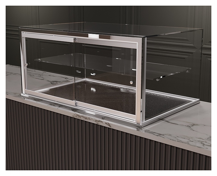 Встраиваемая кондитерская витрина Finist Glassier812 Stone Gst812-11/45/5 предназначена для кратковременного хранения и предпродажной демонстрации десертов и кондитерских изделий на предприятиях общественного питания и торговли. Модель может монтироваться в столешницу из любого материала, что позволяет легко интегрировать в любой интерьер. Витрина оснащена светодиодной подсветкой и полкой. Каркас выполнен из зеркальной нержавеющей стали, купол - из просветленного стекла, зона выкладки - из искусственного камня, который отличается прочностью, долговечностью, гигиеничностью, легко очищается и не впитывает запахи.
