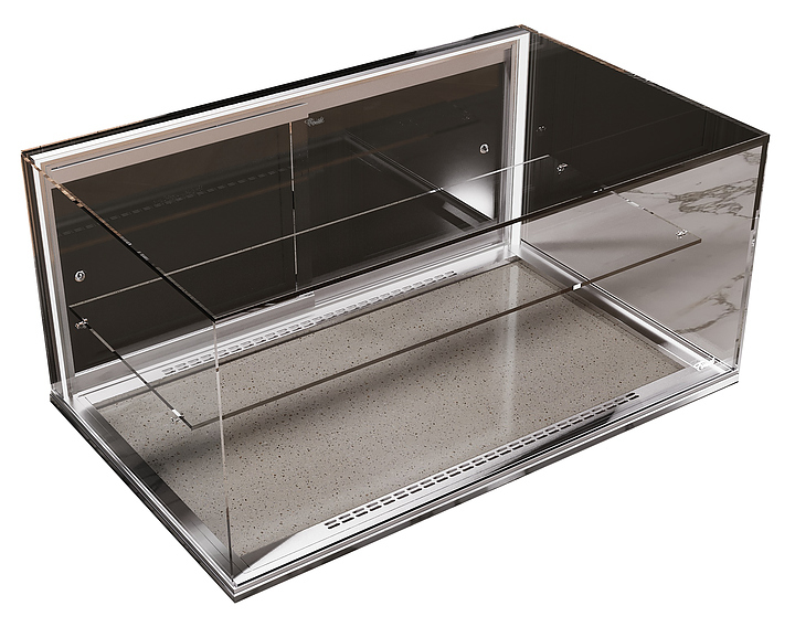 Встраиваемая кондитерская витрина Finist Glassier812 Stone Gst812-9/50/5 предназначена для кратковременного хранения и предпродажной демонстрации десертов и кондитерских изделий на предприятиях общественного питания и торговли. Модель может монтироваться в столешницу из любого материала, что позволяет легко интегрировать в любой интерьер. Витрина оснащена светодиодной подсветкой и полкой. Каркас выполнен из зеркальной нержавеющей стали, купол - из просветленного стекла, зона выкладки - из искусственного камня, который отличается прочностью, долговечностью, гигиеничностью, легко очищается и не впитывает запахи.