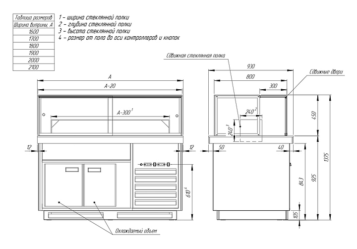 Напольная кондитерская витрина Finist Maria Msv-16-9 предназначена для кратковременного хранения и предпродажной демонстрации десертов и кондитерских изделий на предприятиях общественного питания и торговли. Модель оснащена охлаждаемой камерой-накопителем, выдвижной полкой, столешницей и подсветкой. Фасады выполнены из МДФ, купол - из просветленного стекла, двери-купе - из оргстекла, , зона выкладки и столешница - из искусственного камня, который отличается прочностью, долговечностью, гигиеничностью, легко очищается и не впитывает запахи.