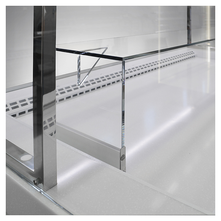- Выкладка на выдвижную стеклянную полку и столешницу