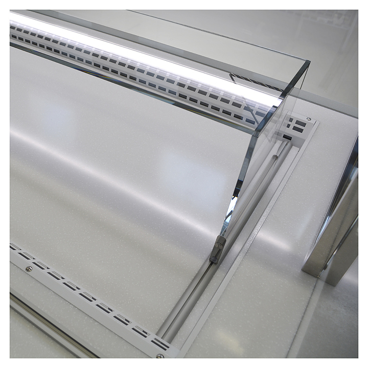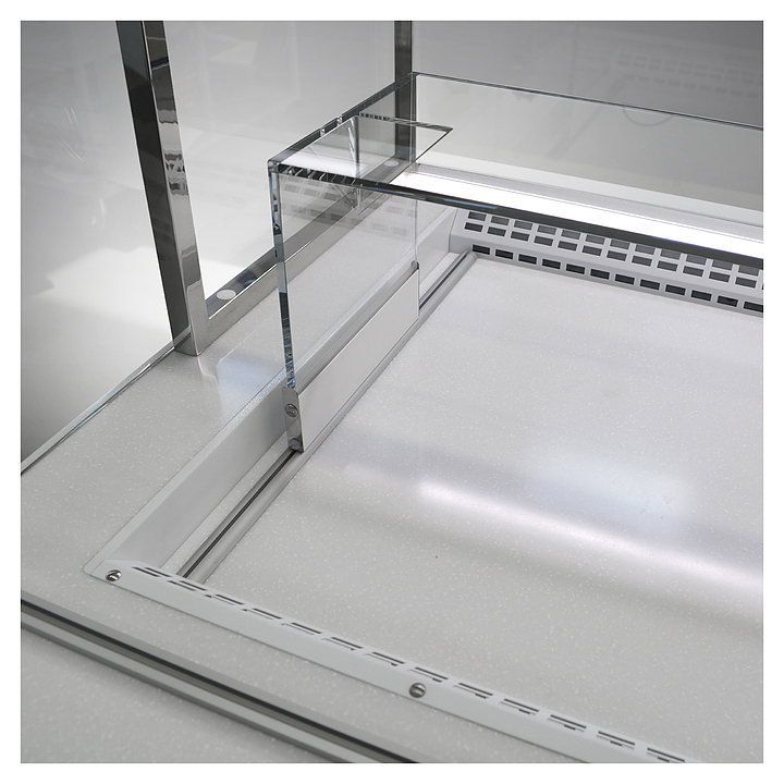 - Выкладка на выдвижную стеклянную полку и столешницу