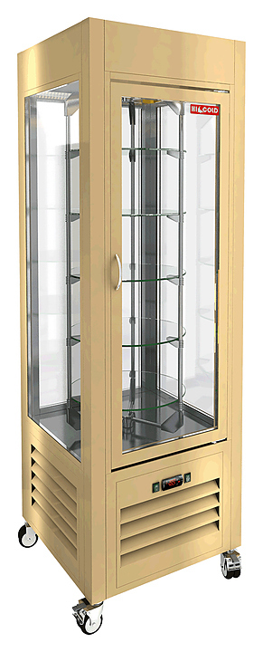 Кондитерская витрина HICOLD VRC 350 R Beige используется на предприятиях общественного питания и торговли для демонстрации, охлаждения и кратковременного хранения кондитерских изделий и десертов. Модель оснащена 5 вращающимися полками и колесами со стопором. Корпус выполнен из окрашенной стали и однокамерного стеклопакета.