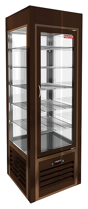 Кондитерская витрина HICOLD VRC 350 Sh Brown FR используется на предприятиях общественного питания и торговли для демонстрации, охлаждения и кратковременного хранения кондитерских изделий и десертов. Модель оснащена 5 полками и регулируемыми по высоте ножками. Корпус выполнен из окрашенной стали и однокамерного стеклопакета.