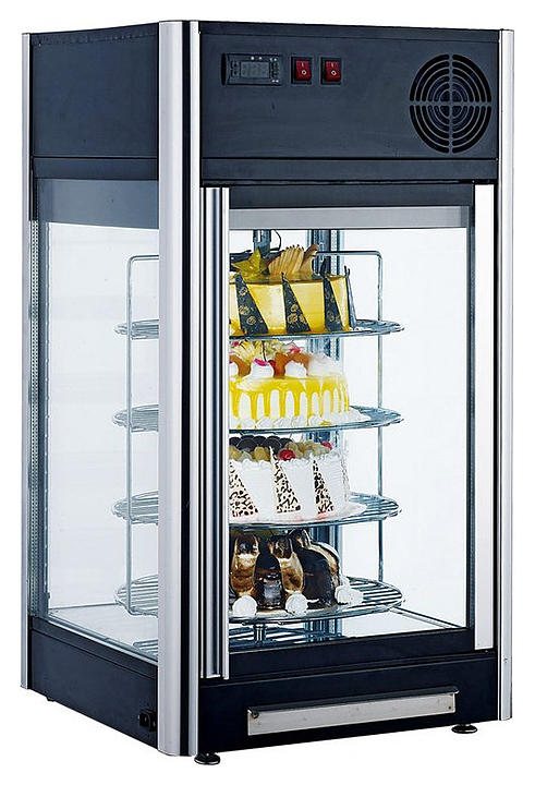 Кондитерская витрина Koreco RTW108L используется на предприятиях общественного питания и торговли для демонстрации, охлаждения и кратковременного хранения тортов, пирожных и других кондитерских изделий. Дно и верх камеры выполнены из нержавеющей стали AISI 304, фронтальное и боковые стекла - из двойного стеклопакета, полки - из нержавеющей стали.