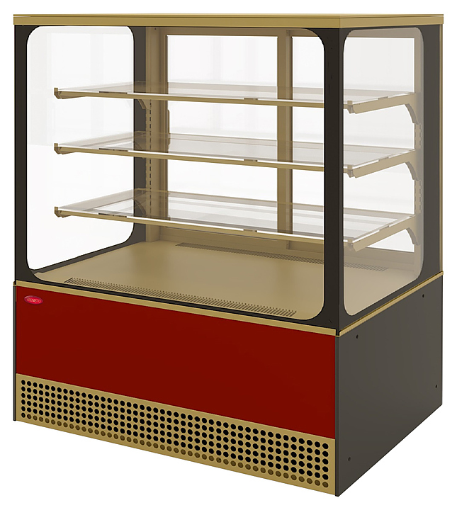 Кондитерская витрина Марихолодмаш Veneto VS-1,3 Cube предназначена для демонстрации, охлаждения и кратковременного хранения скоропортящихся продуктов и напитков на предприятиях общественного питания и торговли. Прибор оснащен светодиодной подсветкой. Корпус выполнен из окрашенной оцинкованной стали.