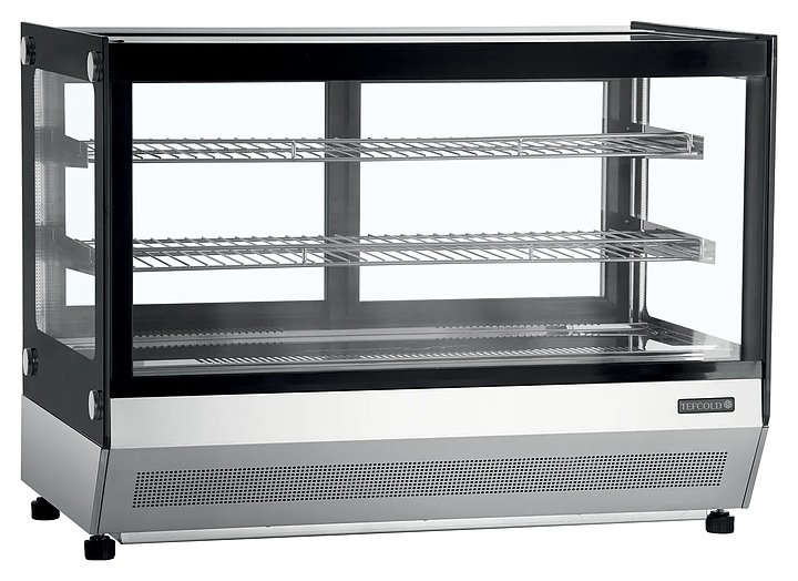 Настольная кондитерская витрина TEFCOLD LCT900F/BLACK предназначена для охлаждения, кратковременного хранения и демонстрации выпечки, тортов, пирожных и пиццы на предприятиях общественного питания и торговли. Модель оснащена 2 раздвижными стеклянными дверцами, 2 решатчатыми хромированными полками, термометром, электронным блоком управления, LED-подстветкой и 4 регулируемыми ножками. Изделие выполнено из нержавеющей стали.