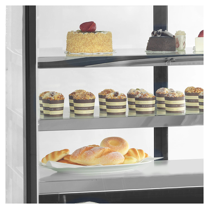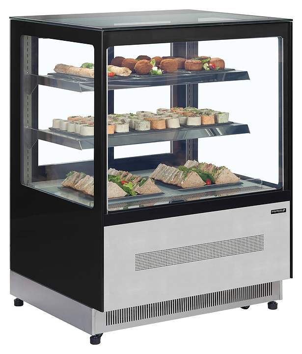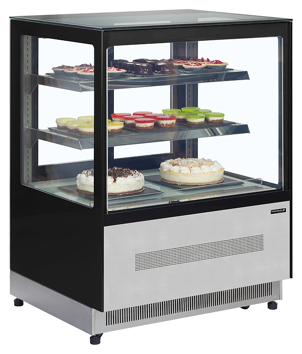 Настольная кондитерская витрина TEFCOLD LPD900F/BLACK предназначена для охлаждения, кратковременного хранения и демонстрации выпечки, тортов, пирожных и пиццы на предприятиях общественного питания и торговли. Модель оснащена 2 раздвижными стеклянными дверцами, 2 стеклянными регулируемыми полками, термометром, электронным блоком управления, LED-подсветкой на каждой полке, 4 регулируемыми ножками и 4 роликами. Изделие выполнено из нержавеющей стали имеет черную блестящую стеклянную раму.