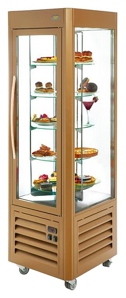 Кондитерская витрина Roller Grill RD 60 TG предназначена для хранения и демонстрации кондитерских изделий и десертов на предприятиях общественного питания и торговли. Модель оснащена цифровым индикатором температуры снаружи и 5 стеклянными вращающими полками. Открытие двери отключает подачу холода и останавливает вращение карусели.