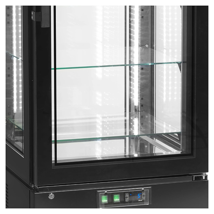 - Прозрачное остекление из двойных стеклопакетов для широкого обзора продукции с 4 сторон и энергосбережения