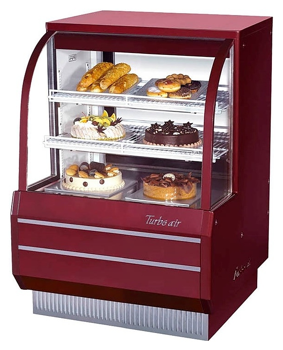 Закрытая витрина Turbo air TCGB-36-W/R используется на предприятиях общественного питания и торговли для демонстрации, охлаждения и кратковременного хранения напитков, тортов, пирожных и других кондитерских изделий и гастрономических товаров. Модель оснащена 2 полками, регулируемыми ножками и LED-подсветкой. Корпус и ножки выполнены из нержавеющей стали.