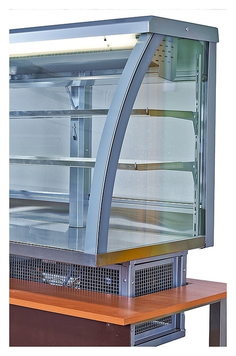 Встраиваемая кондитерская витрина ТехноБалт Novella 1,0 Drop In предназначена для демонстрации, охлаждения и кратковременного хранения кондитерских изделий и выпечки на предприятиях общественного питания и торговли. Модель оснащена 2 полками. Наружные и внутренние детали окрашены порошковой краской, верхняя крышка витрины окрашенная. Дно (столешница) выполнено из нержавеющей стали AISI 304 или AISI 202, полки - из стекла.