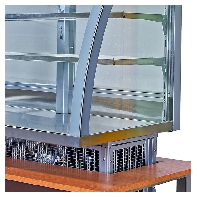 Встраиваемая кондитерская витрина ТехноБалт Новелла 1,26 Drop In предназначена для демонстрации, охлаждения и кратковременного хранения кондитерских изделий и выпечки на предприятиях общественного питания и торговли. Модель оснащена 2 полками. Наружные и внутренние детали окрашены порошковой краской, верхняя крышка витрины окрашенная. Дно (столешница) выполнено из нержавеющей стали AISI 304 или AISI 202, полки - из стекла.