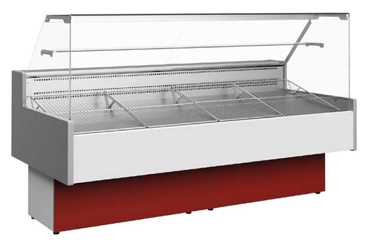 Морозильная витрина Марихолодмаш Таир ВХН-2,0 Cube предназначена для демонстрации, заморозки и кратковременного хранения скоропортящихся продуктов и напитков на предприятиях общественного питания и торговли. Прибор оснащен светодиодной подсветкой. Корпус выполнен из окрашенной оцинкованной стали, верхняя полка (светильник) - из декоративной нержавеющей стали, шторки - из поликарбоната.