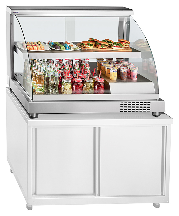 Конструкция, полка и стойки выполнены из высококачественной нержавеющей стали AISI 304 толщиной 1 мм, боковые стенки и дверцы - из закаленного стекла толщиной 5 мм. Эксплуатация витрины допускается при температуре окружающей среды от 12 до 32 °C