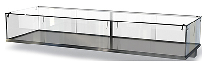Нейтральная витрина КАМИК 2100х650х320(400) используется на предприятиях общественного питания и торговли для демонстрации и хранения закусок, кондитерских изделий или вторых блюд, не требующих определенного температурного режима. Модель оснащена холодной подсветкой и бескаркасной конструкцией, позволяющей встраивать оборудование в любые поверхности. Витрина выполнена ?из пищевой нержавеющей стали AISI 430 и каленого стекла.