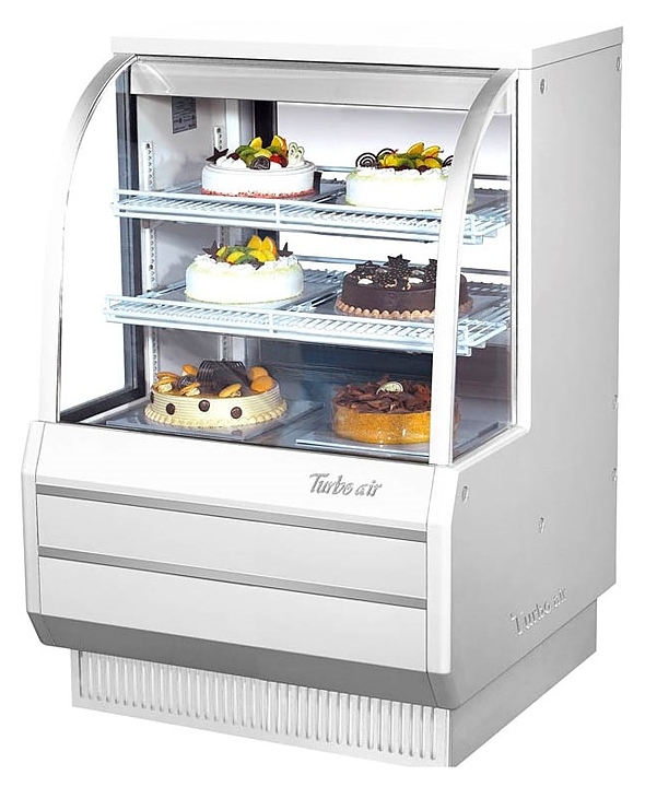 Нейтральная кондитерская витрина Turbo air TCGB-36-DR-W/R используется на предприятиях общественного питания и торговли для демонстрации и кратковременного хранения напитков и продуктов, не требующих особого температурного режима хранения. Модель оснащена 2 полками, регулируемыми ножками и LED-подсветкой. Корпус и ножки выполнены из нержавеющей стали.
