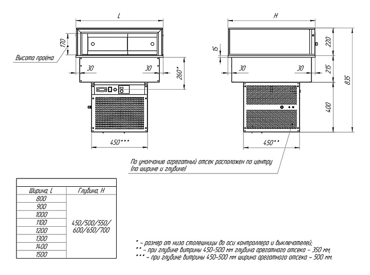 - Расположение агрегата по центру