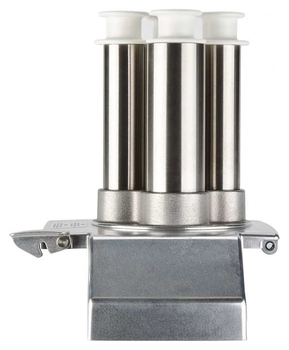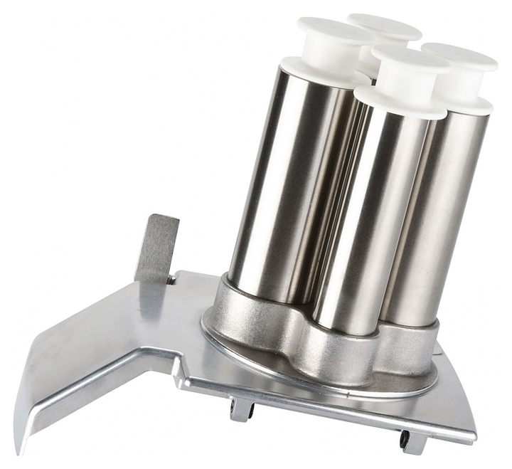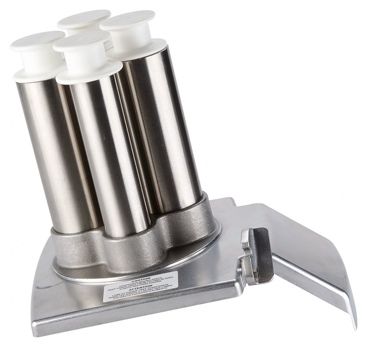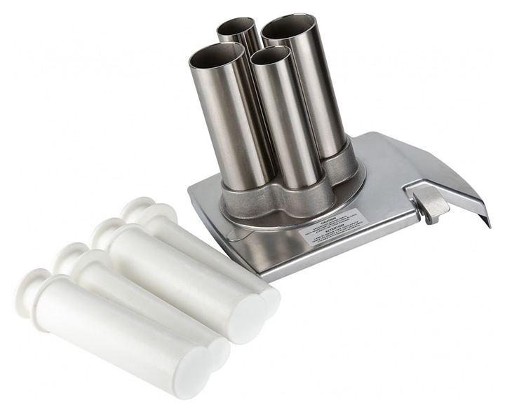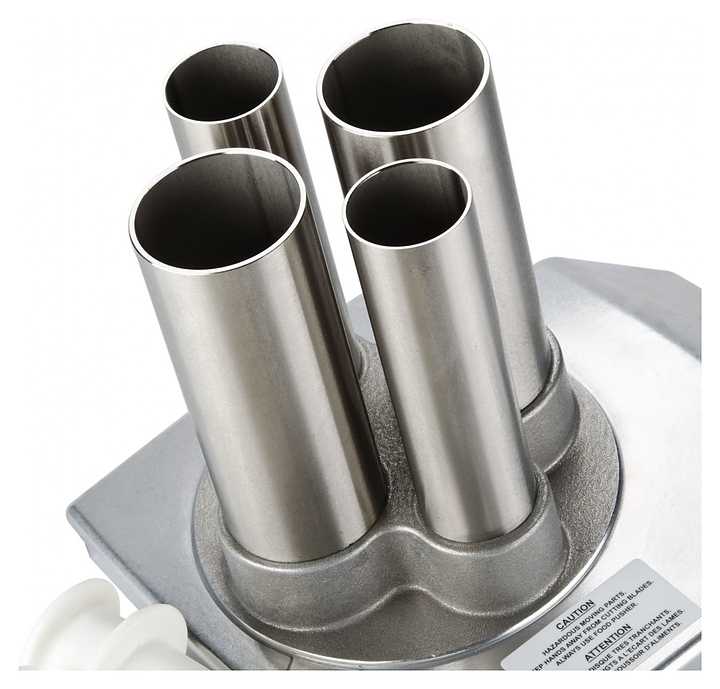 Загрузочная воронка Robot Coupe 28161 используется совместно с овощерезками CL55 на предприятиях общественного питания и торговли. Модель оснащена 4 вертикальными трубками с толкателями - для длинных и нежных овощей и фруктов: бананов, огурцов, кабачков, моркови и т.д. Изделие выполнено из нержавеющей стали.